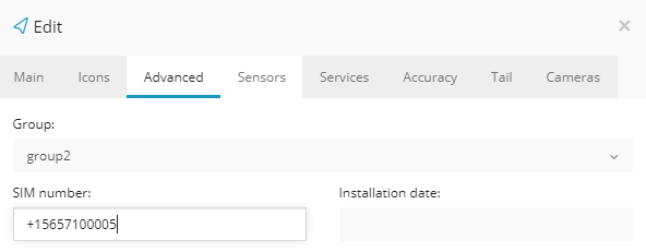 NOTE: Make sure to enter the phone number of the SIM card with the country code in the objects details -> Advanced tab.