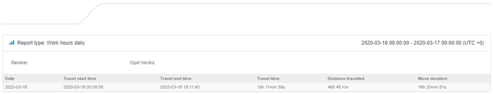 This report displays the total engine hours for the whole day.