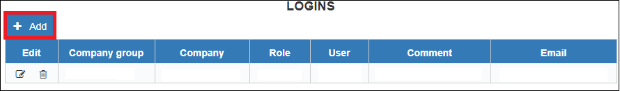 Users can be created and assigned to companies by clicking "Add" button shown in the picture below and filling the necessary information.